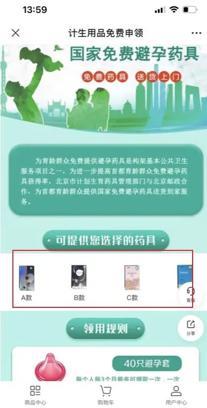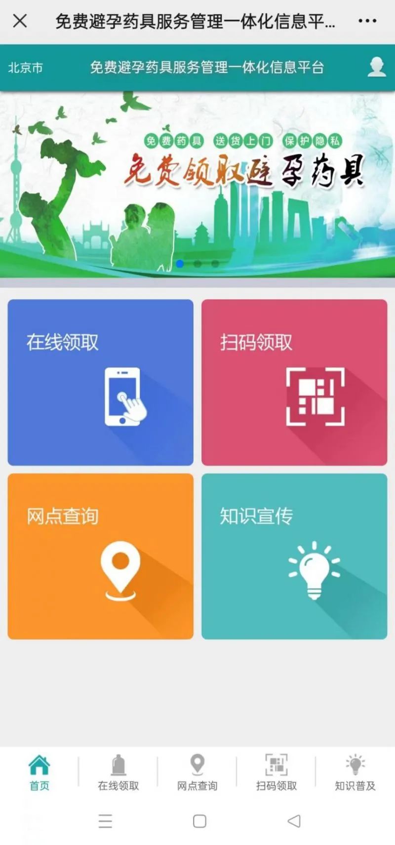 居住在北京市的育齡群眾可以通過微信公眾號或微信小程序在線領取免費避孕藥具。