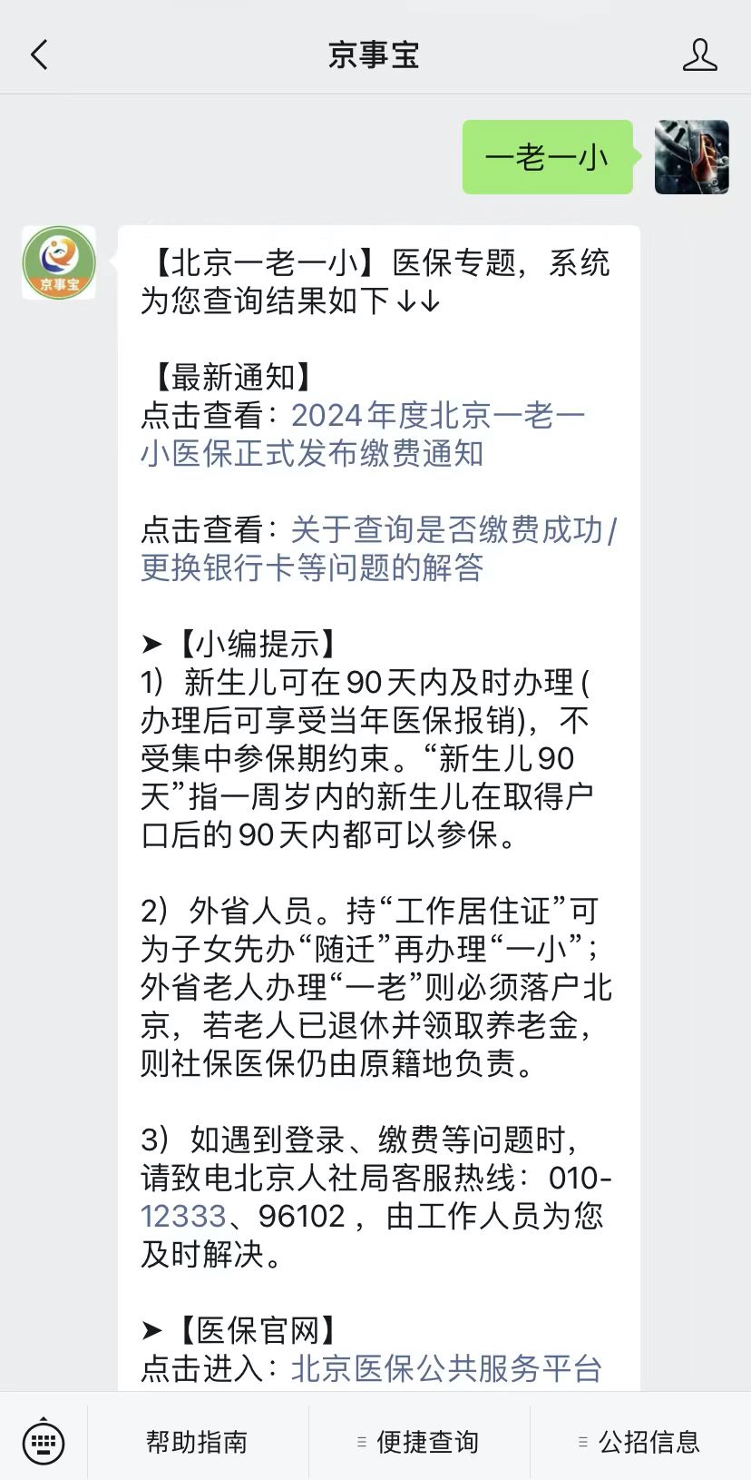 溫馨提示:關注【大京事】微信公眾平臺,可及時獲取最新北京市一老一小醫保繳費入口、參保人資格條件、報銷指南、定點醫院更改等政策及常見問題答疑。